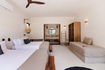 Disfruta una experiencia única de confort y elegancia en nuestra habitación familiar de lujo, diseñada para ofrecer el máximo descanso y privacidad en un entorno tropical incomparable, ubicada en la hermosa Playa Aragón, Oaxaca La habitación cuenta con dos camas tipo Queen y dos camas matrimoniales, distribuidas inteligentemente para brindar comodidad a cada miembro de la familia. En el mezzanine interior, un acogedor espacio adicional invita a relajarse, leer o simplemente disfrutar de una hermosa vista al jardín tropical, donde la brisa del mar y el canto de las aves crean un ambiente inigualable.